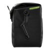 Wasserdichte Lenkertasche für E-Bikes aus PU-beschichtetem Nylongewebe; integrierter LED-Streifen für zusätzliche Sichtbarkeit (Stromzufuhr über Powerbank möglich); seitliche Aufnahmen für handelsübliche Flaschenhalter (geeignet für Flaschen bis zu 0,75 L); magnetischer Taschendeckel mit Klarsichtfach für mobile Endgeräte – Geräte mit Touchscreen können im Deckelfach bedient werden; flexible Außentasche; Tragegriff; Reflektor; Innentasche mit Reißverschluss; maximale Zuladung 5 kg.