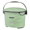 Wasserdichter Fahrrad-Lenkerkorb mit Deckelverschluss; mittige Deckelfixierung erlaubt schnellen Zugriff auf Inhalt; stabiler Aluminiumrahmen; komfortabler, verstellbarer Tragegriff; PU-beschichtetes Gewebe; Innentasche mit Reißverschluss; Korb steht selbstständig durch Innenversteifung; stabile Abstellfüße; Reflektor; maximale Zuladung 5 kg.