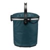 Wasserdichter Fahrrad-Lenkerkorb mit Deckelverschluss; mittige Deckelfixierung erlaubt schnellen Zugriff auf Inhalt; stabiler Aluminiumrahmen; komfortabler, verstellbarer Tragegriff; PU-beschichtetes Gewebe; Innentasche mit Reißverschluss; Korb steht selbstständig durch Innenversteifung; stabile Abstellfüße; Reflektor; maximale Zuladung 5 kg.